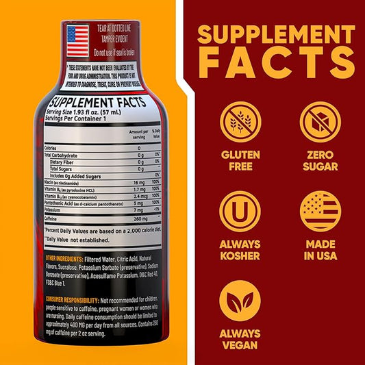 B12 Overload Extra Strength Energy Shot – Mixed Berry– 260mg Caffeine, 14000% B12, Electrolytes – Energy & Vitality Support – Zero Sugar No Calories – Vegan, Kosher, Gluten-Free – 1.93 fl oz, 24-Pack