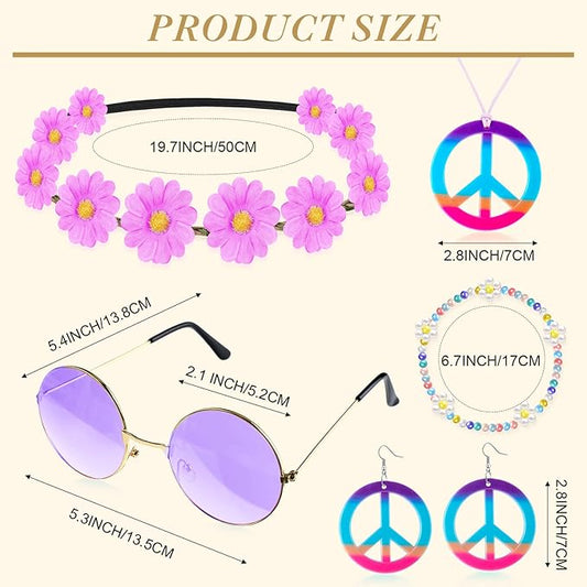Batiyeer 6 Pcs Hippie Costume Accessories Set, Boho Peace Sign Daisy Flower 60s 70s Party Favors Decor for Groovy Party Women