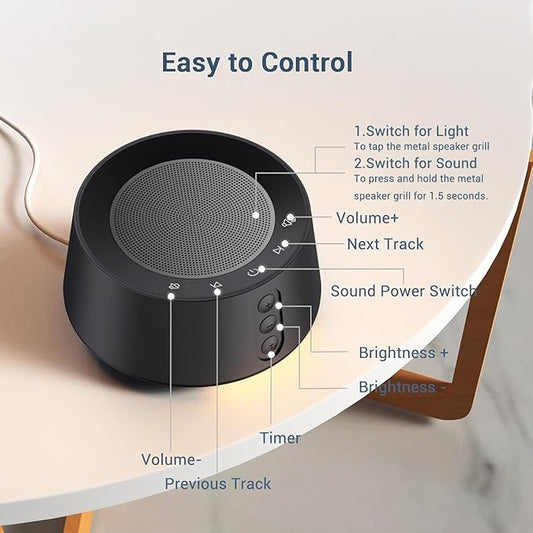 BGOVERSS White Noise Sound Machine with 20 Soothing Sounds, 10 Colors Night Light Sleep Machines Home Office Travel, 5 Timers and Memory Feature Sound Machine for Nursery Baby Kids Adults (Black)