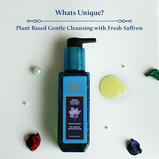 Blue Nectar Kumkumadi Brightening Face Wash with Saffron for Women & Men | Sulphate free Anti Pimple Face Cleanser (10 Herbs, 3.38 Fl Oz)