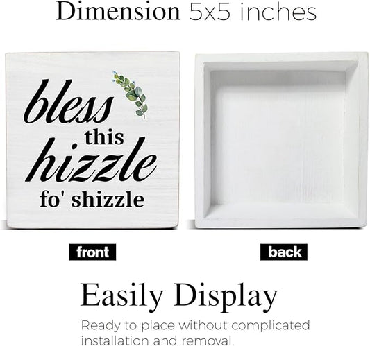 Bless This Hizzle Fo' Shizzle Wooden Sign Decor, Housewarming Gifts New Home, Funny Farmhouse Home Living Room Decor for Friends