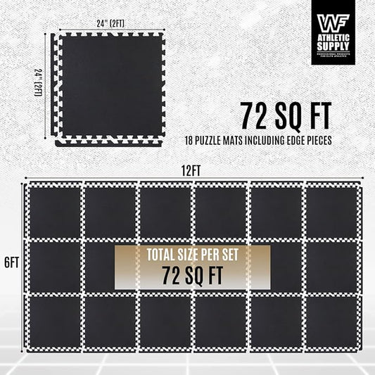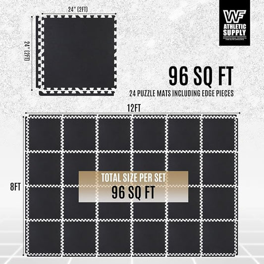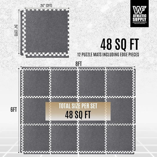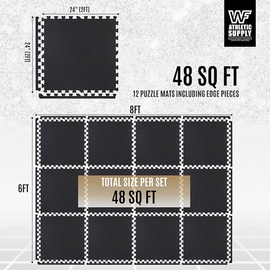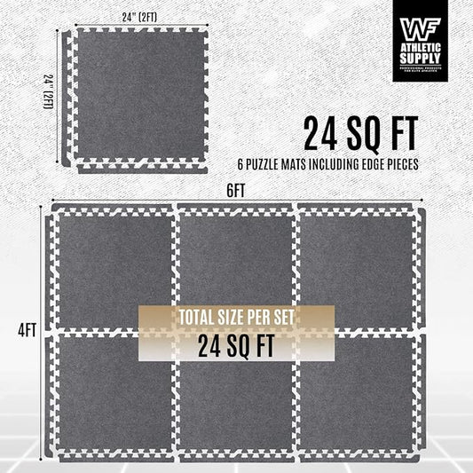CAPHAUS EVA Foam Floor Tiles with Black Top, 24 Inch x 24 Inch Interlocking Carpet Texture Mats