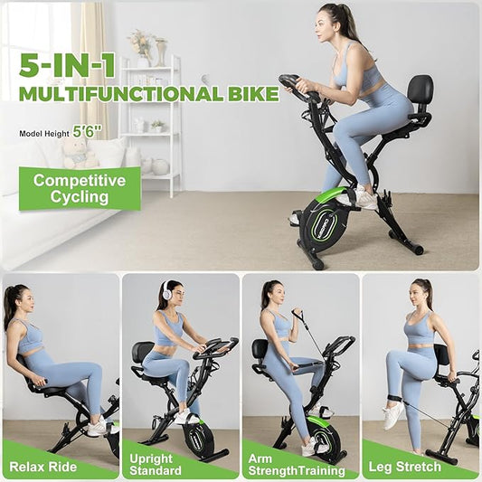 Caromix Folding Exercise Bike, 5 in 1 Stationary Magnetic Cycling Bicycle Upright Indoor Cycling Bike for Home Workout 330LB Capacity