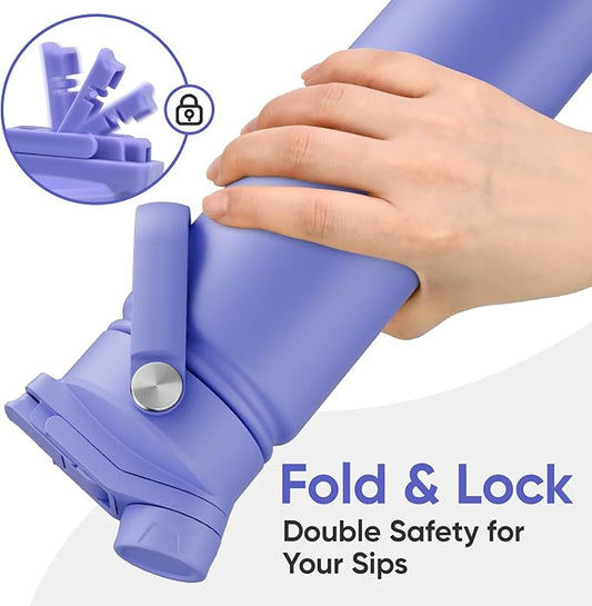24 oz Insulated Water Bottle, 2-in-1 Lid, Straw & Spout with Protected, Leak Proof, Keep Cold, Stainless Steel, Metal, Reusable, Handle, for Travel, Gym and School, 2 Lids, Mousse