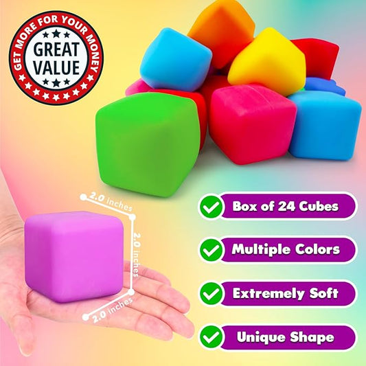 24 Pack Slow Rising Stress Cube , Dough Stress Balls Soft Fidget Squishy Toys for Anxiety Relief, Pull Stretch Classroom Prize Party Favors Toys for Kids