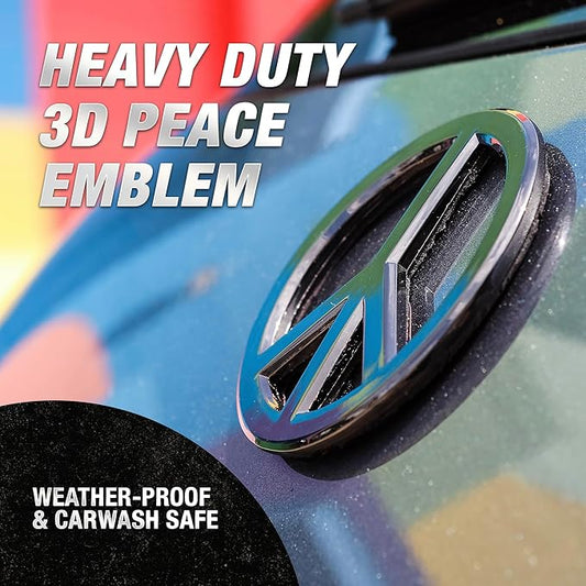 Classic Black Peace Sign Logo - Metal Car Emblem by Revolution Car Badges - Antiwar Peace and Love Symbol - Premium Alternative to Bumper Stickers, Decals, and Magnets (Black Plated Metal)