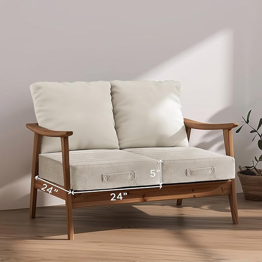 Codi Thick Replacement Couch Cushions 2 Sets, Upholstery Foam with Washable Covers for Sofa Cushion Chair Meditation - 24 × 24 × 5 Inch, High Density Foam, Ivory