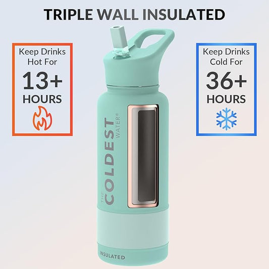 Coldest Insulated Water Bottle with Straw Lid - Stainless Steel Metal Insulated Bottle for Men & Women (Oceanic Green, 32 oz)