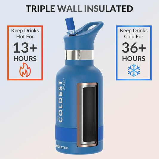 Coldest Insulated Water Bottle with Straw Lid - Stainless Steel Metal Insulated Bottle for Men & Women (Sailor Blue, 12 oz)
