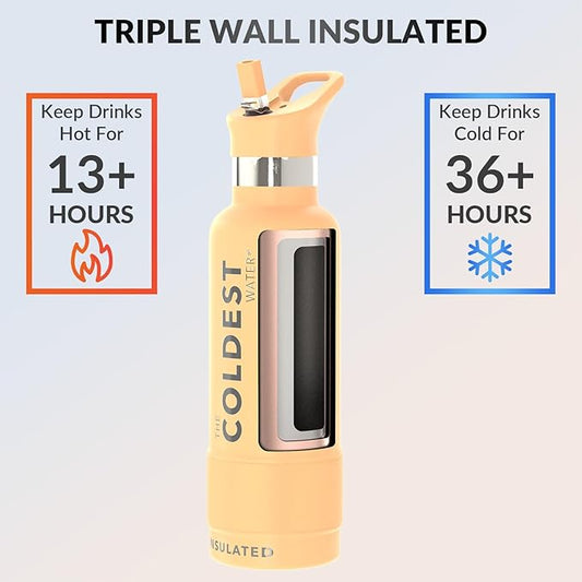 Coldest Insulated Water Bottle with Straw Lid - Stainless Steel Metal Insulated Bottle for Men & Women (Sahara Peach, 21 oz)