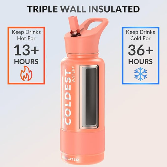 Coldest Insulated Water Bottle with Straw Lid - Stainless Steel Metal Insulated Bottle for Men & Women (Sahara Peach, 32 oz)