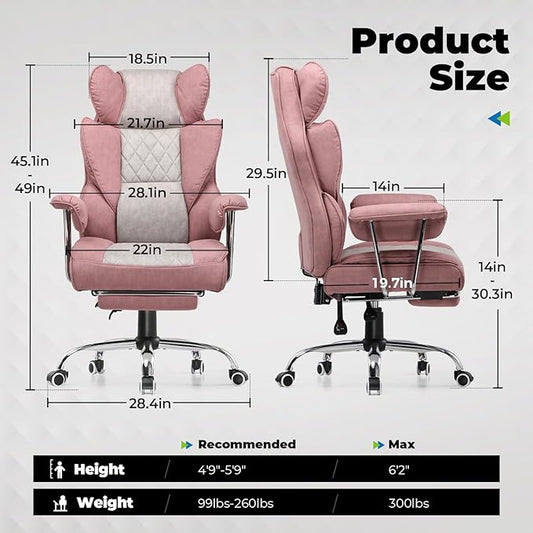 COMHOMA Big and Tall Office Chair 400LBS Wide Ergonomic Fabric Deluxe Embossing Designed Gaming Chair with Foot Rest,150°Reclining Adjustable Armrests Pocket Spring Back Support and Pillow