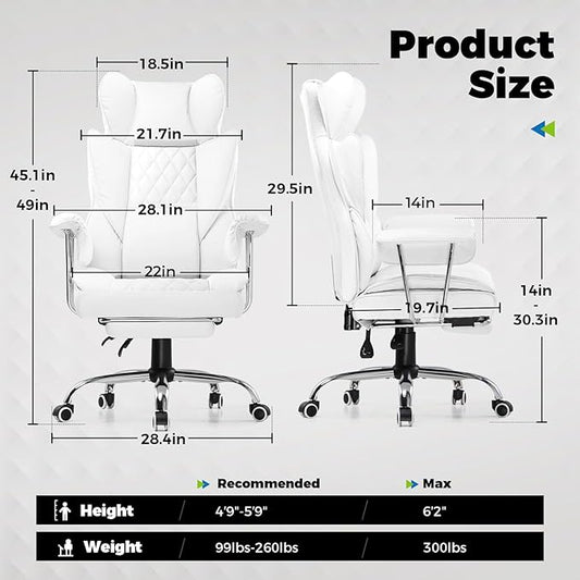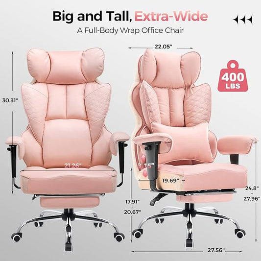 COMHOMA Big and Tall Office Chair 400LBS Wide Ergonomic Gaming Chair with Deluxe Embossing Designed Leather with Foot Rest,150°Reclining Adjustable Armrests Pocket Spring Back Support and Pillow