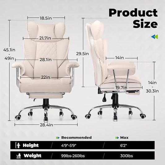 COMHOMA Big and Tall Office Chair, High Back Leather Gaming Chairs with Footrest, Executive Ergonomic Office Chair with Pocket Spring Lumbar Support and with Outward Fixed Soft Armrests