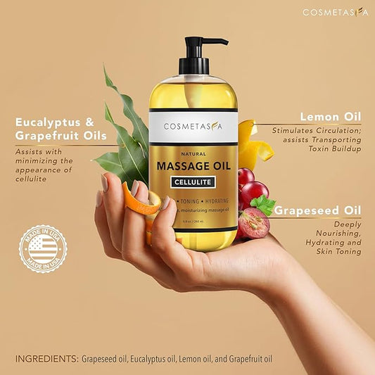 Cosmetasa Body Massage Oil for Massage Therapy Kit - Arnica Sore Muscle Massage Oil, Cellulite Massage Oil, Lavender Massage Oil, Skin Massage Roller Ball, Massager Mitt - Relaxing Luxury Spa Gift Set