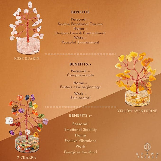Crystal Tree Desk Decoration, Tree of Life 7 Chakra Healing Crystals & Stones for Positive Energy, Good Luck Gifts for Women and Mens, Set of 12 Handcrafted Trees for Home & Office (Orgone Base)