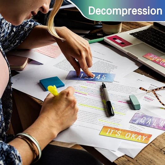 Crtiin 50 Pieces Anxiety Sensory Stickers for Anxiety Relief Items Mental Health Stickers Fidget Textured Strips for Office Classroom Desk Relieve Adult Stress(Bright Style)