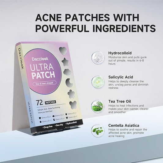 Cute Star Acne Patch with Salicylic Acid, Mix Shapes Hydrocolloid Pimple Stickers Iridescent Colors 72 Pcs, Fashion Zits Blemishes Breakouts Patches