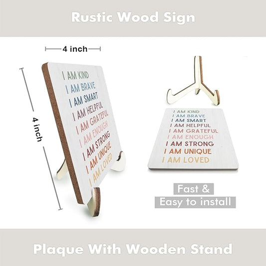 Decorative Desk Decor Motivational Affirmations Plaque with Wooden Stand Inspirational Mental Health Wood Sign for Office Nursery Homeschool Classroom Education Reading Corner Table Shelf