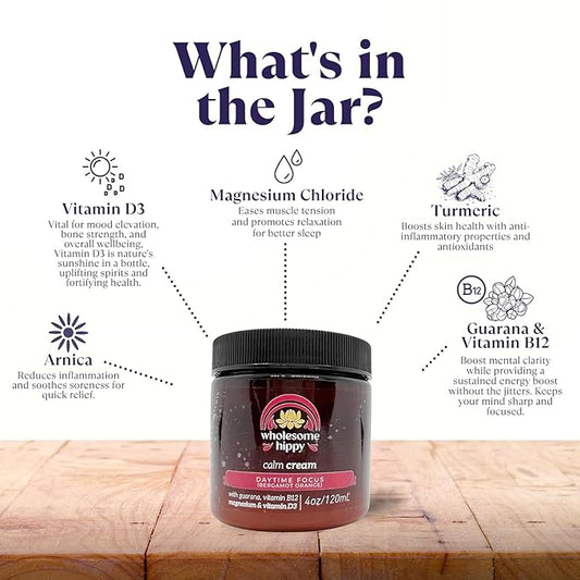 Daytime Focus Calm Cream – Energizing Body Butter with Magnesium, Vitamin B12, Guarana & Bergamot Orange – Moisturizing Wellness Cream for Daily Clarity – 4oz