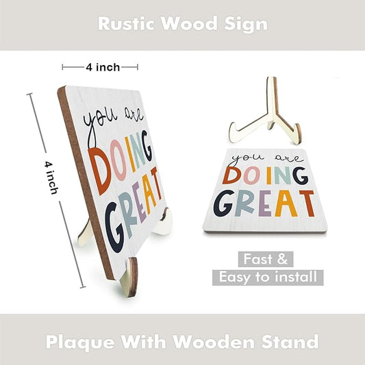 Decorative Desk Decor Motivational You Are Doing Great Affirmations Nursery Decor Plaque with Wooden Stand Inspirational Wood Sign for Office Homeschool Classroom Reading Corner Table Bookshelf