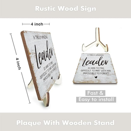 Decorative Desk Decor Motivational Leader Gift Positive Thank You Gifts Appreciation Plaque with Wooden Stand Inspirational Wood Sign for Boss Mentor Leader Coworker Home Office Table Bookshelf