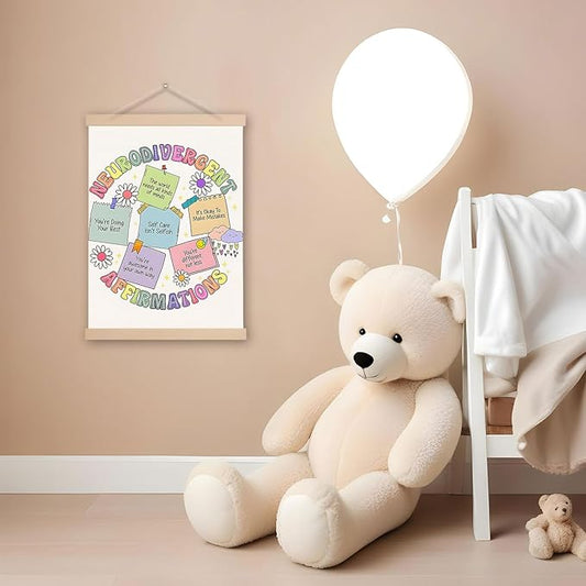 DNEULYR Neurodivergent Affirmations Inspirational Mental Health Wall Art Poster, ADHD Neurodivergent Autism Acceptance Ayslexia Wall Decor for Classroom Counselor Therapy Office Decor, 12x16 Inches
