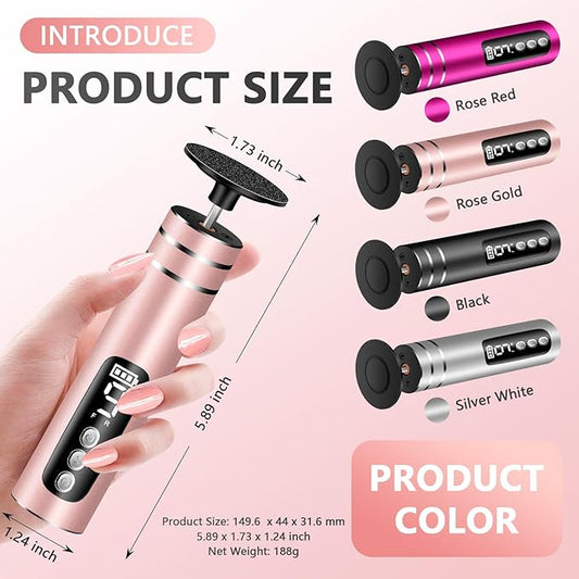 EAONE Portable Electric Foot File-Callus Remover for Feet, Professional 2 in 1 Foot/Nail Filer -Digital Display for Battery Level & 9 Speed Control-Rechargeable Pedicure Tool for Dead Skin (Rose Gold)