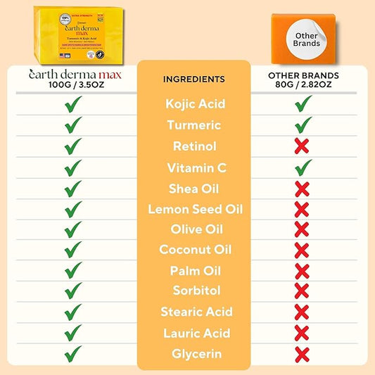 Earth Derma Max Beauty Turmeric & Kojic Acid Dark Spots Fading Bar, Extra Strength Formula with Retinol, Vitamin C, Shea Oil, Designed in USA