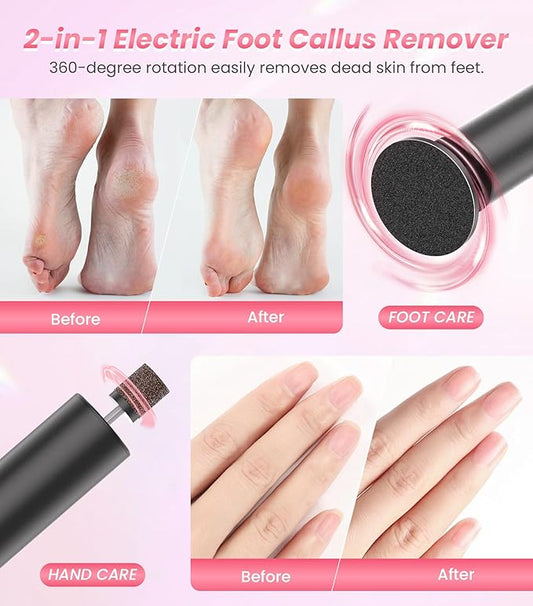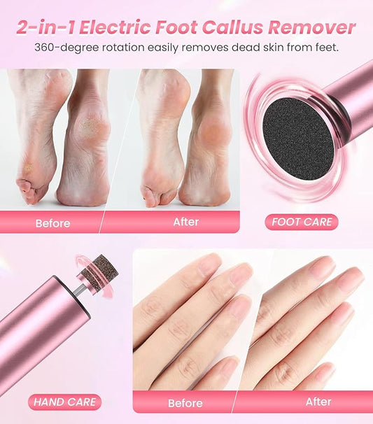 Electric Foot Callus Remover, 6 Speeds 2-in-1 Rechargeable Electric Foot File & Nail Grinder, Callus Remover for Feet Pedicure Tools with Sandpaper Disc for Dead Skin - Pink