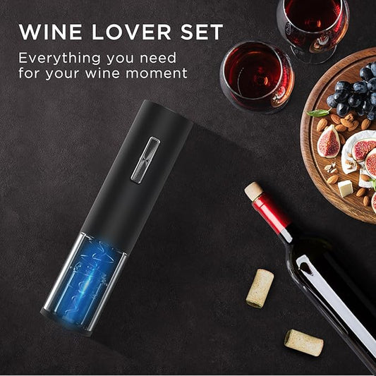 Electric Bottle Wine Opener Set, Automatic Electronic Corkscrew with Blue Led Indicator, Vacuum Stopper, Pourer, and Foil Cutter, Perfect for Home, Party and Wedding, Rechargeable