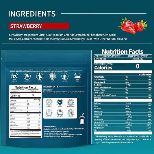 Electrolytes Powder Packets, Hydration Packets, Electrolytes Sugar Free, Portable Electrolyte Drink Mix for Rapid Hydration, No Sugar & Low Sodium | 0 Calorie | Strawberry Flavor | 20 Sticks