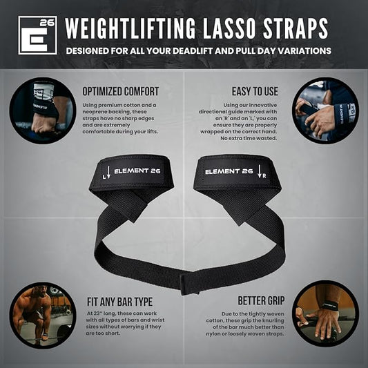 Element 26 Lifting Wrist Straps (Pair) With Guide - Weightlifting & Strength Training Straps for Men and Women