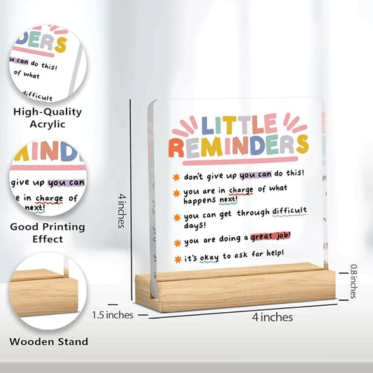 Encourage Decor Sign Inspirational Gifts for Women Men Little Reminders Mental Health Positive Affirmations Acrylic Desk Decor Sign for Home Office Bedroom 4×4 Inches