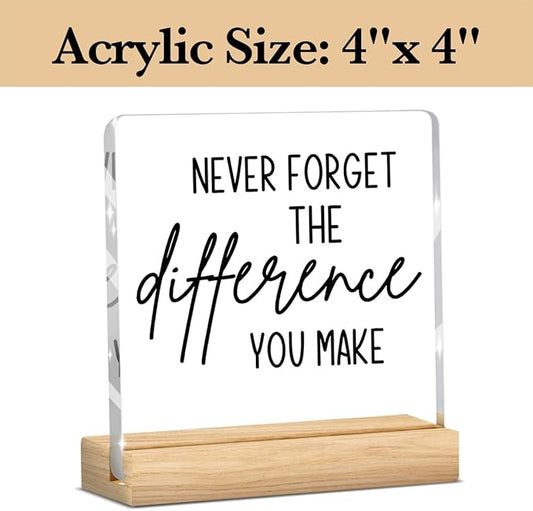 Employee Appreciation Gifts, Appreciation Gifts for Coworkers, Thank You Gifts for Women, Acrylic Sign With Wooden Stand for Office Desk Table Shelf-Never Forget The Difference You Make