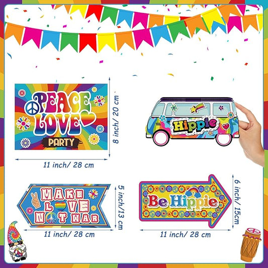 Epakh 20 Pieces 60's Party Decorations Hippie Decorations Groovy Birthday Party Decor 1960s Peace Sign Decor