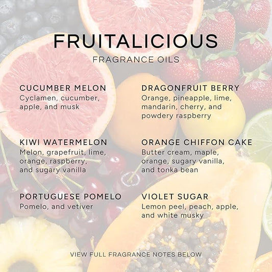 Eternal Essence Oils Fruitalicious Set of 6 Premium Fragrance Oils - Violet Sugar, Kiwi Watermelon, Orange Chiffon Cake, Cucumber Melon, Portuguese Pomelo, and Dragon Fruit Berry Scented Oils - 10ML