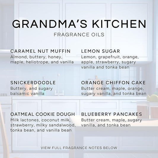Eternal Essence Oils Grandma's Kitchen Set of 6 Premium Fragrance Oils - Caramel Nut Muffin, Oatmeal Cookie Dough, Snickerdoodle, Orange Chiffon Cake, Lemon Sugar, and Blueberry Pancakes - 10ML
