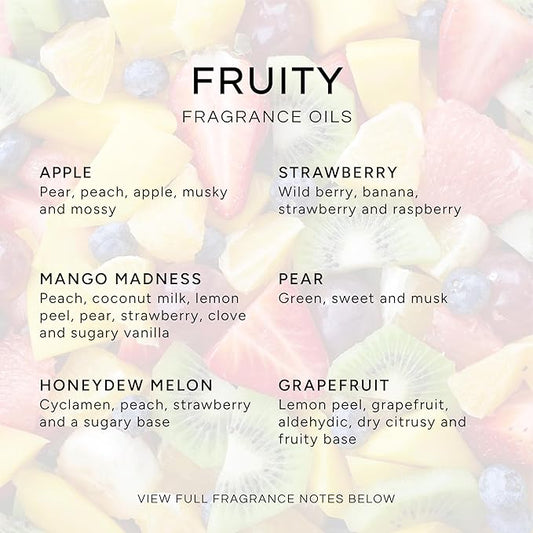Eternal Essence Oils Fruity Set of 6 Premium Fragrance Oils - Includes Apple, Mango Madness, Honeydew Melon, Strawberry, Pear, and Grapefruit Scented Oil - 10ML