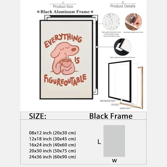 Everything is Figureoutable Motivational Canvas Wall Art Print Cute Dog Quote Inspirational Art Poster Mental Health Home Office Kids Affirmation Wall Decor Minimalist Picture 12x18inch black framed