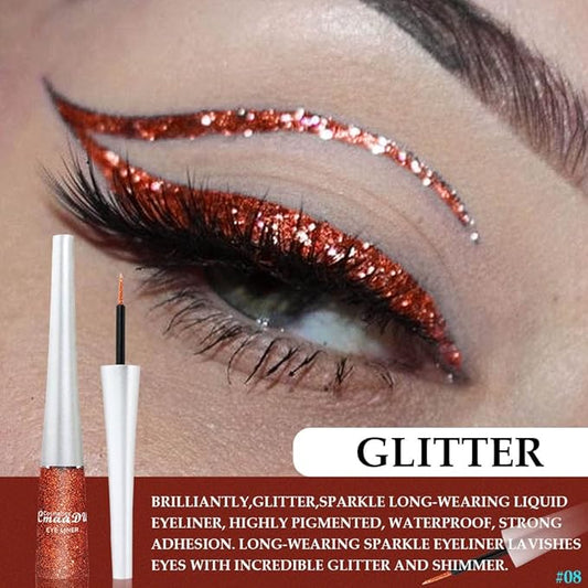 evpct 2Pcs Bronzer Red Color Liquid Glitter Eyeliner Set, Long-wearing and Waterproof