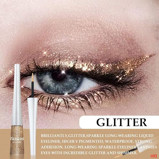 evpct 2Pcs Gold Champagne Gold Color Liquid Glitter Eyeliner Sets Eyeliner Glitter Liquid Liners for Women Liquid Sparkly Glitter Eyeliner delineador con glitter de colores para ojos colores 01+14