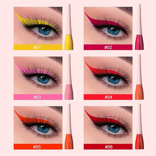 evpct 6Pcs Yellow Red Pink Tomato OrangeRed Brown Liquid Eyeliner Set Waterproof Eye Liners for Women, Eyes Wing Colored Eyeliner delineador de ojos a prueba de agua contra el agua blanco para ojos