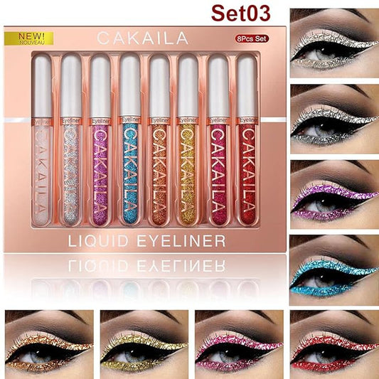 evpct 8 Colors Liquid Glitter Eyeliner Liquid Sets Glitter Eye Liners for Women White Silver Rose Gold Pink Sparkly Shimmer Eyeliner Set