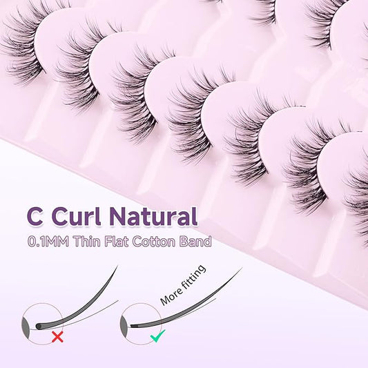 False Lashes Fluffy Eyelashes Wispy Mink Strip Eyelash 10 Pair Short Natural Lash Pack Soft Pestañas Set Natural Look (Wispy Lash | 8-17mm)