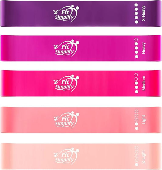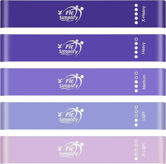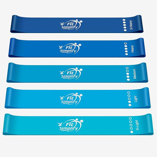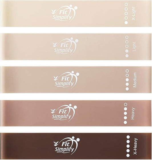 Fit Simplify Resistance Loop Exercise Bands with Instruction Guide and Carry Bag, Set of 5