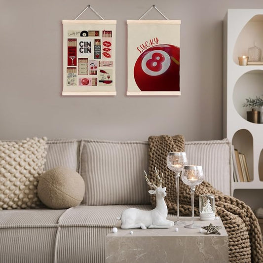 FITIE Trendy Lucky 8 Ball Bar Wall Art Poster Framed Set of 2, Bar Wall Decor, Y2K Room Decor, Funky Retro Y2K Red Aesthetic Canvas Wall Art Prints for Home Dorm Apartment Decor, 12x16 Inches