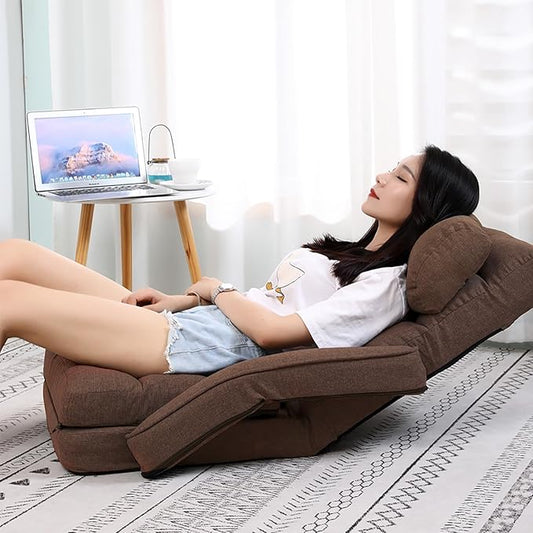 FLOGUOR 42-Position Adjustable Floor Chair, Chaise Lounge Indoor, Folding Lazy Sofa with Armrests and a Pillow Padded Adults Gaming Chairs for Living Room, Bedroom Factory Price, 8803XM (Brown)