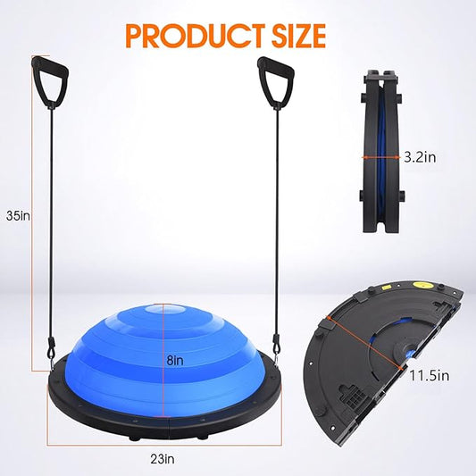 Foldable Balance Ball Trainer with Resistance Bands – Home Workout Equipment with Pump & Non-Slip Base – Core Strength Training Tool for Yoga, Pilates, Balance & Stability