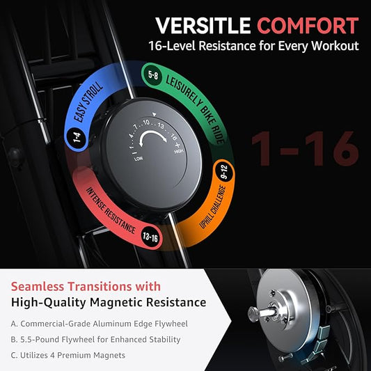 Foldable Exercise Bike for Small Apartments, Stationary Bikes for Home, Indoor Portable Cycling Bike with 16-Level Magnetic Resistance, 260LBS Capacity, 5.5 LBS Flywheel, Designed for Small Space Workout 816
